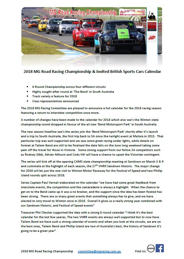Morris Garages have come on board as the trophy sponsor for the opening round of 2017. Richard Milligan commented that he is […]
