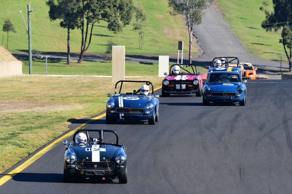 There was a list a mile long of vehicle changes and new drivers, former V8 Ute racer Gary Baxter who would pilot Adrian Akhursts MG ZS BTCC car while Akhurst himself returned in the ZT V8 he campaigned during 2017. Ian Branson was debuting, the long time karting competitor was trying his hand at circuit racing while Glen Coutinho was in an MG F instead of the usual TR6 Triumph. David Baigent debuted his MG Midget and Jac Cousin from Canberra debuted in the category in his Jaguar E Type V12 Coupe. Alister Ondarchie made a late change into an MG TF Cup car and a list a mile long of NSW MG Group S competitors also joined the class including Nick and Andrew Sebesfi, Bob Rowntree, Sam Girgis, Geoff Pike, Warren Hotz and more.