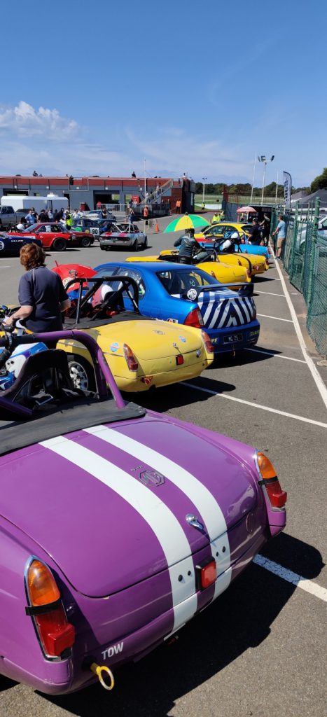 Qualifying was underway in some wet conditions, the light rain enough to make it tricky for all participants, the first serious time came from Rhys Howell who had stepped into the family owned MG ZR Judd and cracked out a 1:32.7 to go to the top of the timesheets, it wasn’t long before Vince Gucciardo took the top spot with a 1:30.33 in the MG C GT V8. The pair were well ahead of their competition as Ben Muller (B GT V8) initially sat third with a 1:37.1 before getting a clean lap to move into the 1:32’s and go second quickest. Reigning champion Philip Chester set a 1:34.9 to go fourth quickest and promptly parked the car in the garage in the difficult conditions, for the fast cars it was tough to find clean laps as everyone battled for traction. Robin Bailey (B GT V8) was a late comer to the session and his late run netted him a 1:33.9 to bump Chester to 5th, while Muller wouldn’t improve on his 1:32.1. Rhys Howell had a second run at a time and got down to a 1:30.5 as Gucciardo did another 1:30 the pair separted by 0.17 for pole, Howell on his final lap netting a 1:29.99 to go to the top by .4 of a second before Gucciardo’s final lap pulled him to a 1:28.1 to secure pole. The wet conditions allowed the smaller four cylinder cars to get in the mix, David Anderson the fastest four cylinder MG B with a 1:42.7, his nearest compatriot a 1:45.6 for Gary Bulmer in a similar MG B, Nahum Ayliffe was a surprise, the MG ZS 180 dropping behind Bulmer with John Stevenson in his MG TC ahead of the B’s of Henk Zwartaveen, Greg White, Darren Souter and Richard Vollebregt. Bruce Astbury was best rookie in 20th while Caelan Chester finished up 24th.